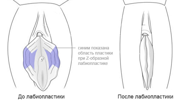 Лабиопластика: Z - образная пластика малых половых губ, увеличение больших половых губ.
